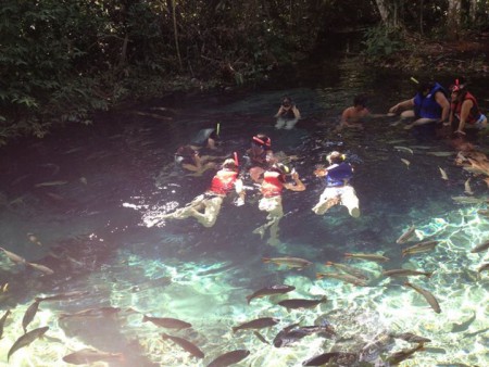 Flutuação no aquário encantado, com suas 3 nascentes com água de caverna, interligadas entre si e ao Rio Salobra.